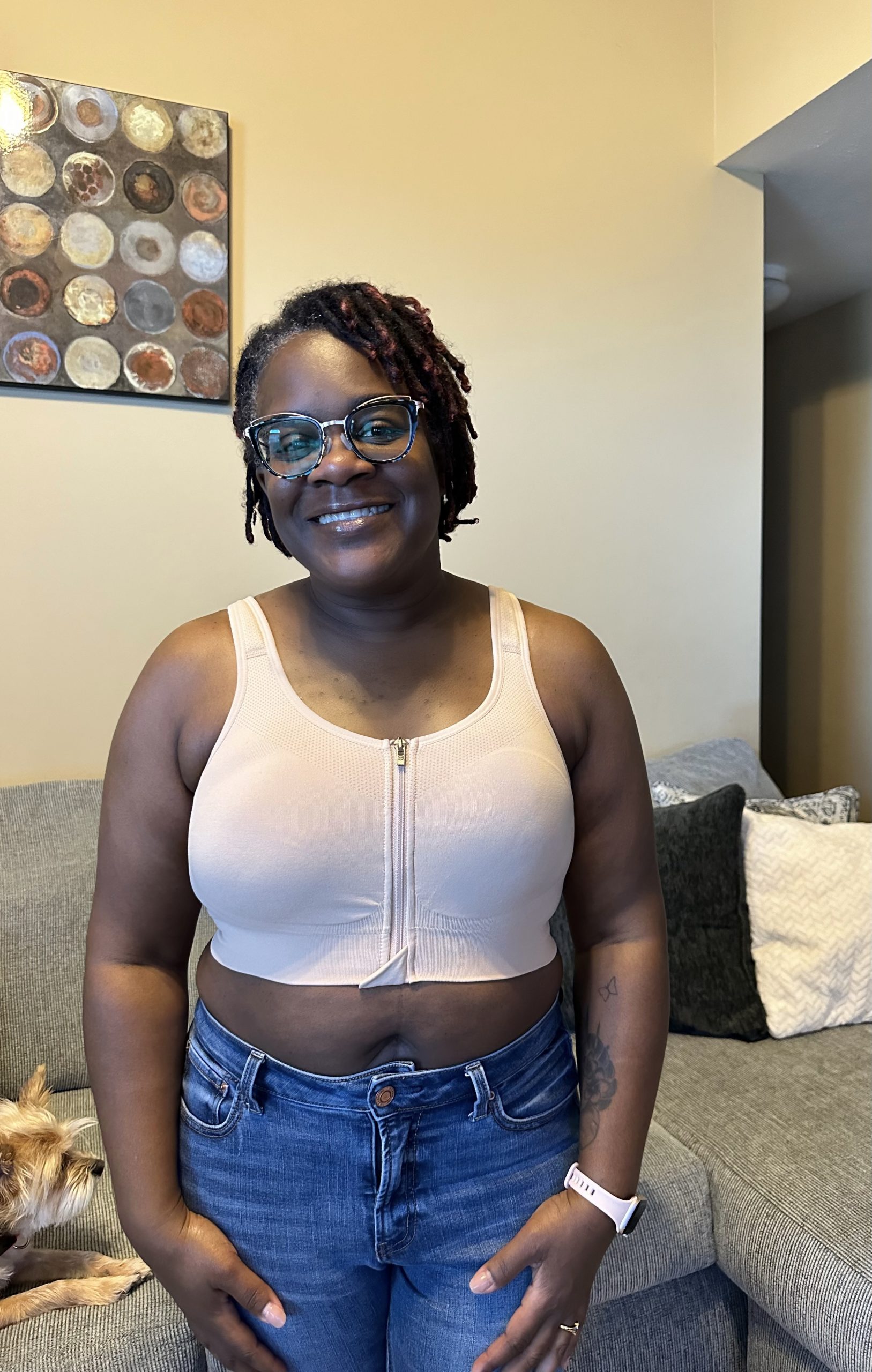 With summer coming I realized I wanted something closer to the bras I wore prior to surgery. I reached out to Prairie Wear and they sent me the HuggerVIDA. This felt so much better after having high-compression! It offered medium compression and was perfect for the 2nd stage of my recovery. Also I’m basically wearing the bra 24/7 as advised by my plastic surgery team. It feels just like a regular bra but I feel a lot freer because there’s less compression.
